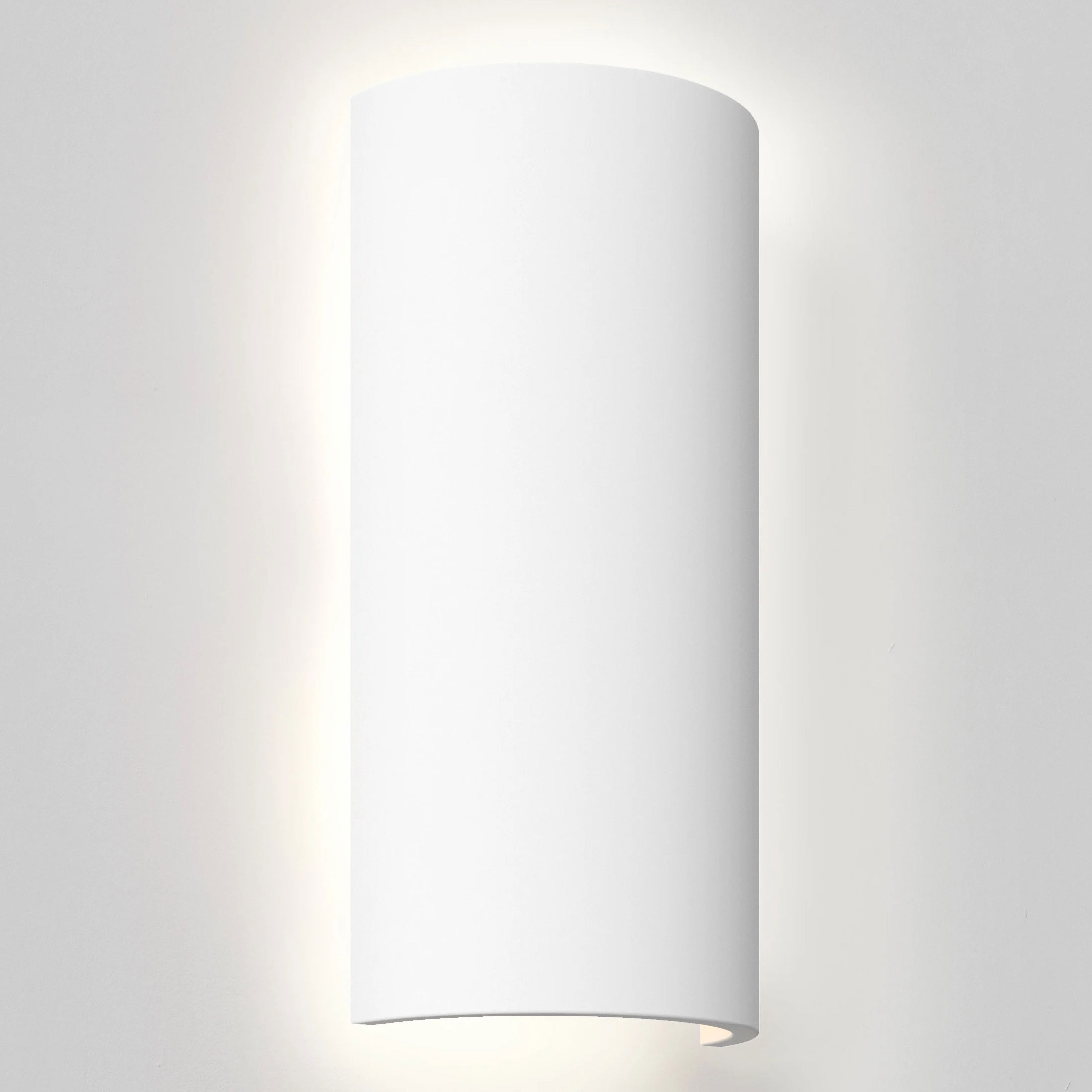 The Comino Vertical Wall Sconce features a timeless design that will enhance the decor of any hallway, living room, or bedroom. The cylindrical shade hides the light sources and creates a halo effect against the wall that causes the fixture to appear to float in mid-air. Comino is finished in white plaster, which can be painted on-site to customize its look.