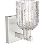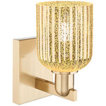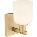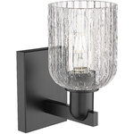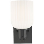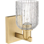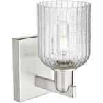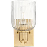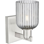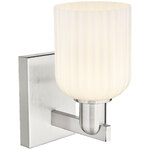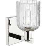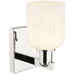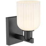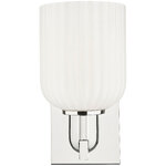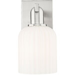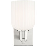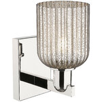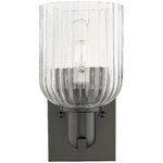 The Bridal Veil Wall Sconce adds a touch of decorative elegance to your interior space. Its sleek frame supports a dome of hand-blown, ribbed glass that diffuses light beautifully, casting warm, inviting shadows throughout your room.