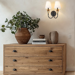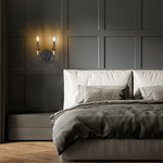 Inspired by the serene beauty of a calla lily, the Claudelle Curved Arm Double Wall Light captures natural elegance in a single, sweeping form. Its slim arm curves beneath a white fabric shade, adding softness to its modern form. Perfect for a bedside, hallway, or reading nook, this sconce adds a timeless touch.