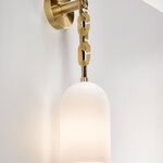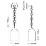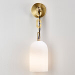 The Dome Wall Sconce is both timeless and elegant. It features a large dome of handblown frosted glass suspended by an oversized chain with an exposed, fabric-wrapped electrical cord. Includes 16 inches of chain as standard; longer chain lengths in increments of 12 inches are available for an additional fee.