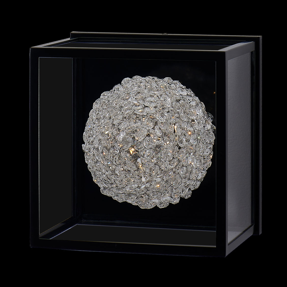 Drawing inspiration from the clean lines and shapes of Modern architecture, the Lina Esterno outdoor wall light boasts clear wire-wrapped crystals, a Matte Black Fluorocarbon finish, and sturdy tempered glass panels. Designed to endure the harshest of weather conditions, this versatile fixture is suitable for both indoor and outdoor use and offers straightforward installation. The energy efficient LED lamping makes this perfect for your outdoor space.