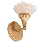 The Flora Short Wall Sconce showcases a botanically inspired Capiz Shell design, offering an incredibly light and airy ambiance. This elegant blend of classic and contemporary styles, reminiscent of a torch, combines premium natural materials with refined sophistication. The collection is exquisitely finished in Modern Gold and features a scalloped candle cup detail.
