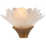 The Flora Tall Wall Sconce showcases a botanically inspired Capiz Shell design, offering an incredibly light and airy ambiance. This elegant blend of classic and contemporary styles, reminiscent of a torch, combines premium natural materials with refined sophistication. The collection is exquisitely finished in Modern Gold and a scalloped candle cup detail.