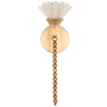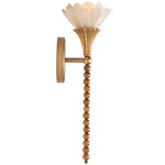 The Flora Tall Beaded Wall Sconce showcases a botanically inspired Capiz Shell design, offering an incredibly light and airy ambiance. This elegant blend of classic and contemporary styles, reminiscent of a torch, combines premium natural materials with refined sophistication. The collection is exquisitely finished in Modern Gold and features wooded bead columns and scalloped candle cup detail.