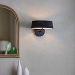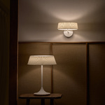 The Halo Wall Light is a sleek update to a classic drum silhouette. Featuring an integrated LED ring with excellent color rendering, it creates a relaxing environment that mimics natural sunlight. The finely pleated fabric shade softens the modern edge and helps to diffuse the light for glare-free illumination. To operate lamp, twist base to turn on and dim lamp.