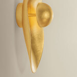 A companion to Fistral, the Meena Wall Sconce recalls a pearl nestled within an oyster. Framed by sinuous curves that sweep away from the wall, the metalwork becomes a three-dimensional object that is almost more sculpture than sconce. Round LED housing glows from within, lit by integrated LED. Finished in Vintage Gold Leaf, Meena's artistry cannot be overstated.