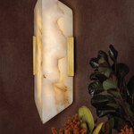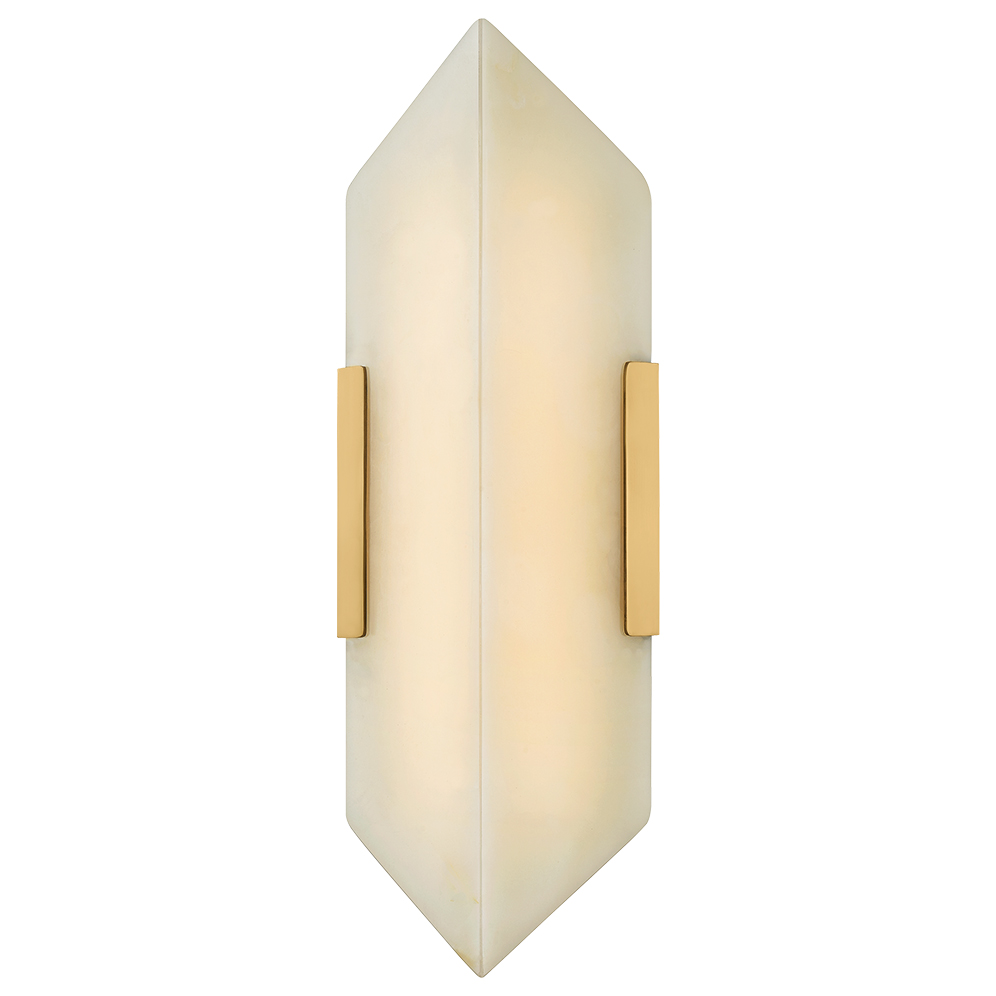 The Geo Wall Sconce is defined by its quiet strength and sculptural clarity. Glowing panels of honey onyx are book matched to reveal mirrored veining—an artisanal detail more often seen in luxury surfaces than lighting. The symmetry of the stone takes center stage, framed by clean, minimal metalwork in Vintage Brass that amplifies its natural elegance. Geo offers a soft, grounded glow that feels both bold and restrained. Its graphic silhouette and elemental beauty lend structure and visual rhythm to interiors.