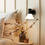 The Type 80 W4 Wall Sconce has a minimalist, graphic form, with a soft opal glass shade that glows when illuminated. Each detail, from the cone shade to the simple arm, has been carefully considered to deliver a clean, contemporary piece.