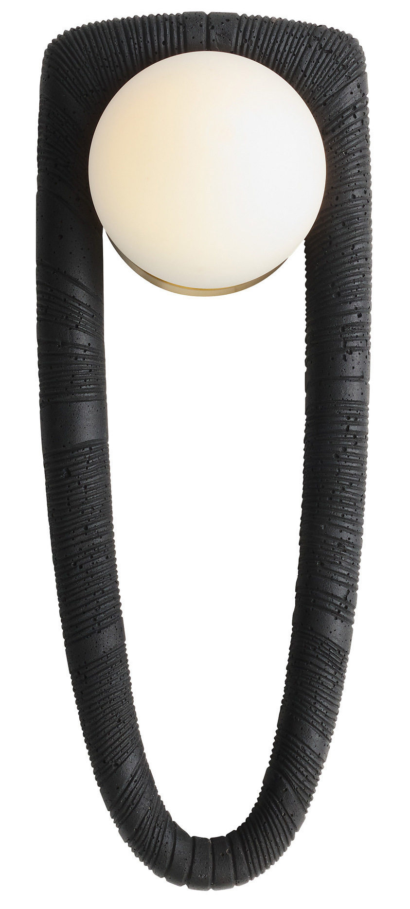The Laredo Wall Sconce brings a bold midcentury modern look to your interior space. The curved frame, with an irregular grooved texture, is complemented by a clean glass globe that casts warms shadows of light across your room.