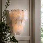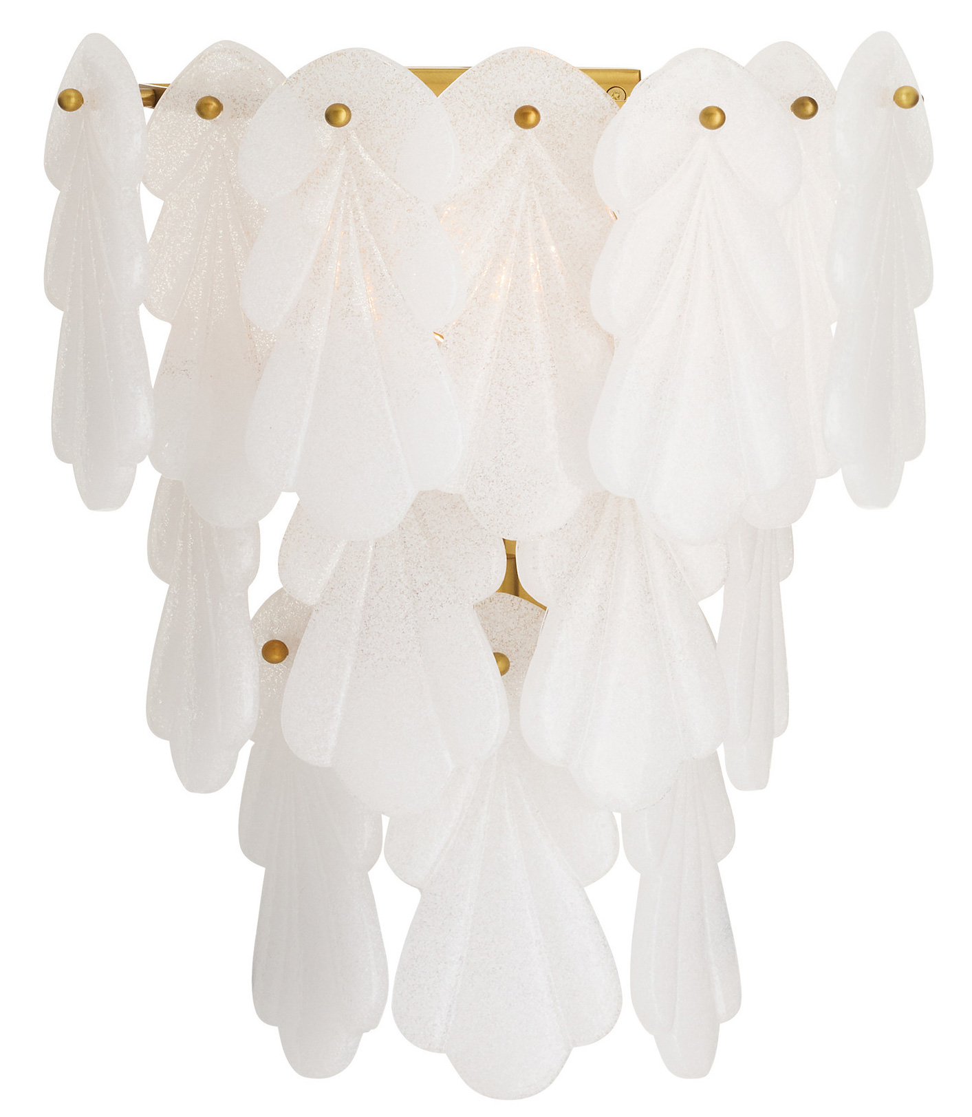 The Malia Wall Sconce brings a vintage beauty to your interior space. The curved frame holds cascading tiers of floral inspired glass that allows warm shadows of light across your room.
