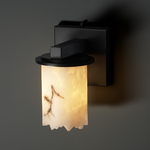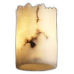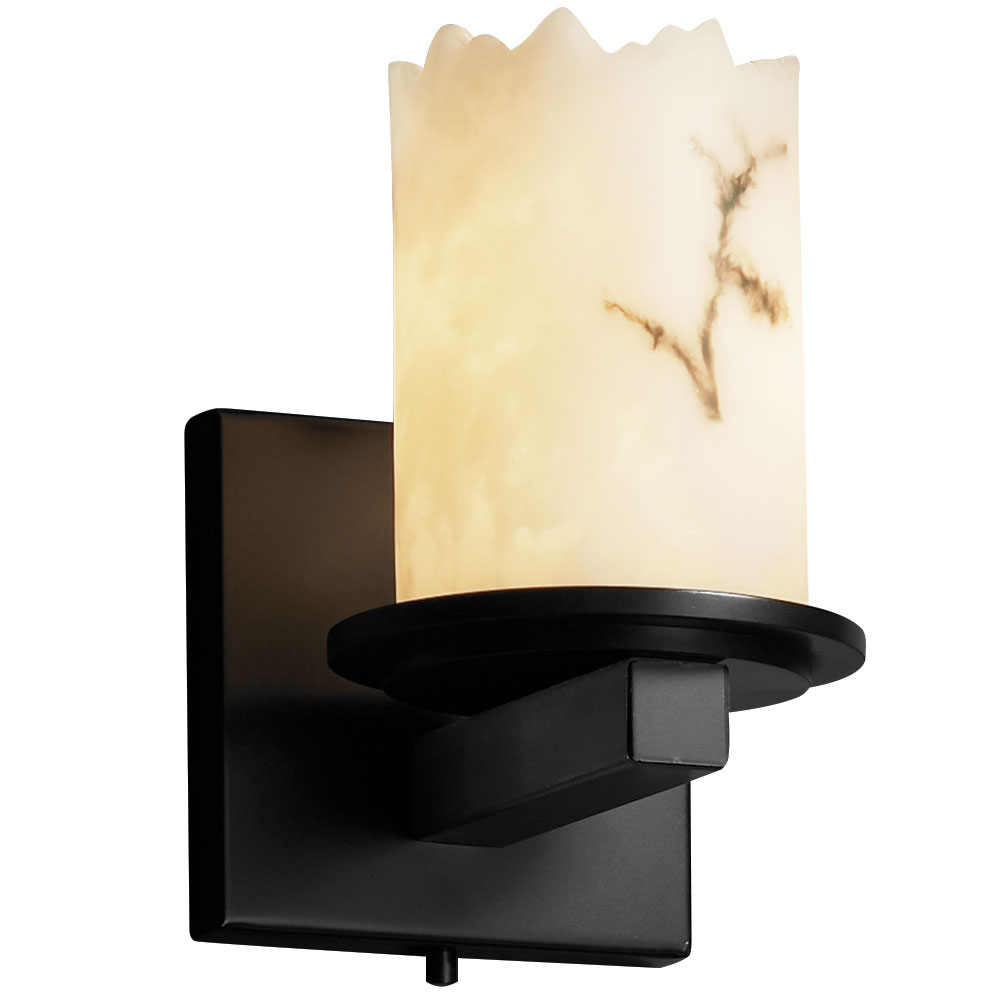 Dakota Cylinder Broken Rim Lumenaria Wall Sconce is available in a Dark Bronze, Polished Chrome, Brushed Nickel or Matte Black finish with Faux Alabaster Cylinder Broken Rim glass. One 60 watt, 120 volt BA-9 type Candelabra base Incandescent lamp is required but not included. 5 inch width x 8 inch height x 6.25 inch depth. Can be mounted as a up or downlight. UL Listed for Damp Locations.