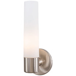 The Saber Wall Sconce features a case etched opal glass shade supported by a round metal backplate. Saber's simple but elegant design will complement a variety of interior decor styles.