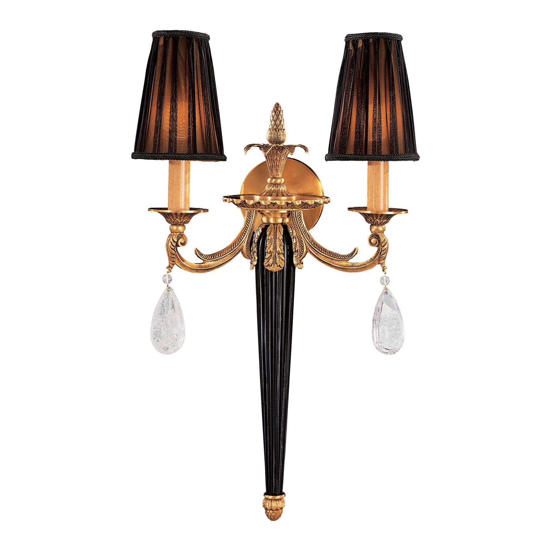 The Signature N950492 Wall Light is an art deco style wall sconce in French Gold finish with Rock Crystal accents and Black Fabric shades. Handcrafted in Spain. ETL listed.