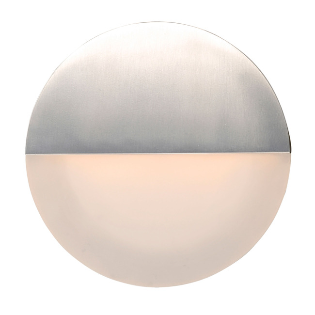 The Alumilux Glow 120V Outdoor Wall Sconce features an Aluminum and White Acrylic disc to illuminate any indoor or outdoor space. Dimmable via Triac dimming.