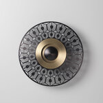 The Art Deco inspired Earth Turtle Light features a Satin Graphite or Satin Brass central disc with an outer disc with cut-out pattern in Satin Brass, Satin Copper, Satin Graphite, or Satin Nickel. Available in two sizes.