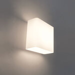 The Glaze Wall Sconce brings understated elegance to your interior space. Featuring a curved square glass design open at both ends, it casts warm, ambient light both upward and downward, creating a soft, inviting glow throughout your room.