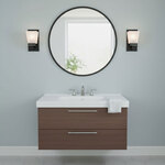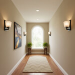 The Eastwood Wall Sconce brings a clean, traditional look to your interior space. The dual toned frame is complemented by a squared-off glass diffuser that casts warm shadows of light across your room.