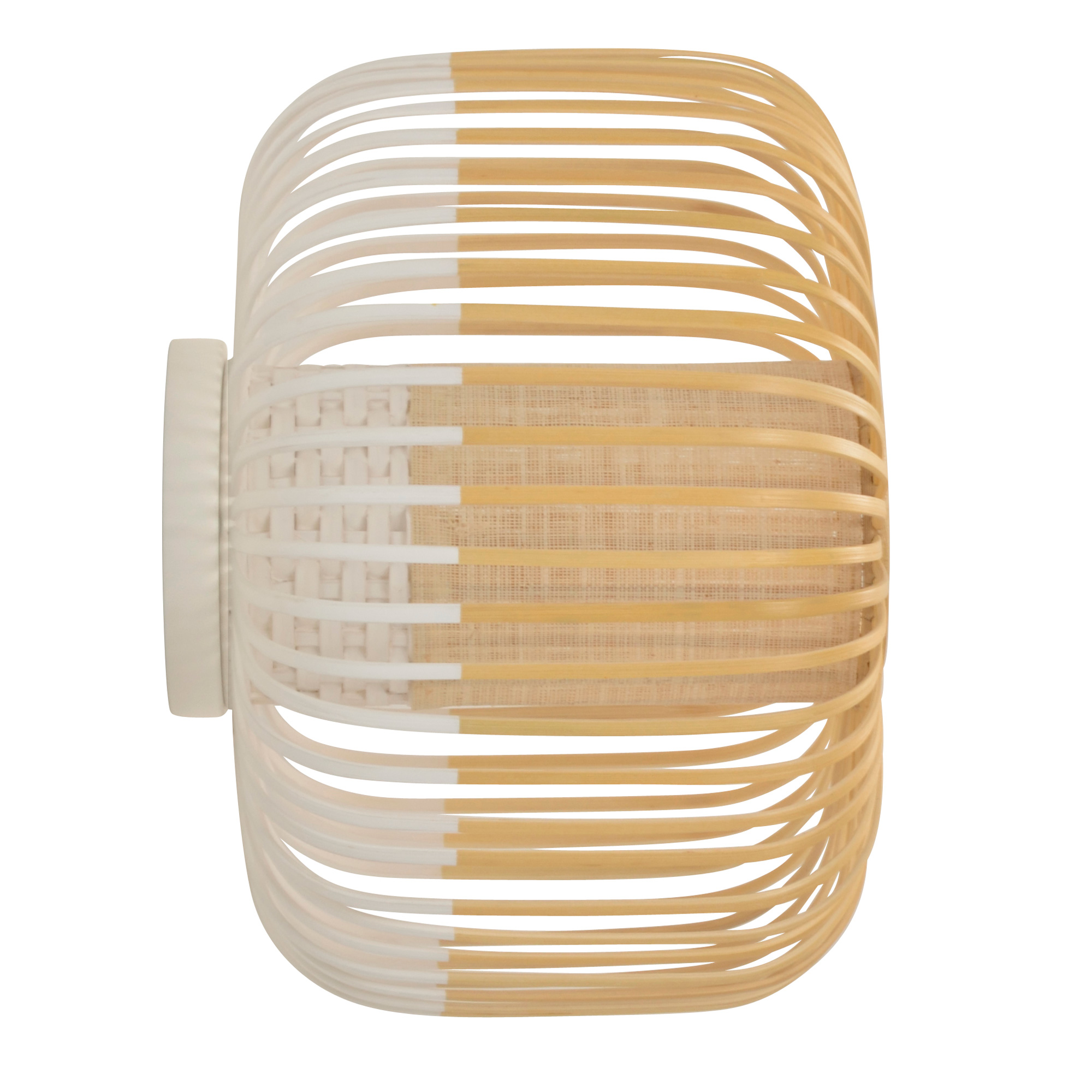 The Bamboo Wall/Ceiling Light designed by Arik Levy, offers a festive, nature inspired look that features a lantern-like silhouette with a woven diffuser set inside a striated shade to create textural shadows set atop a cylindrical base. Available in four sizes and finished in Black, Red or White.