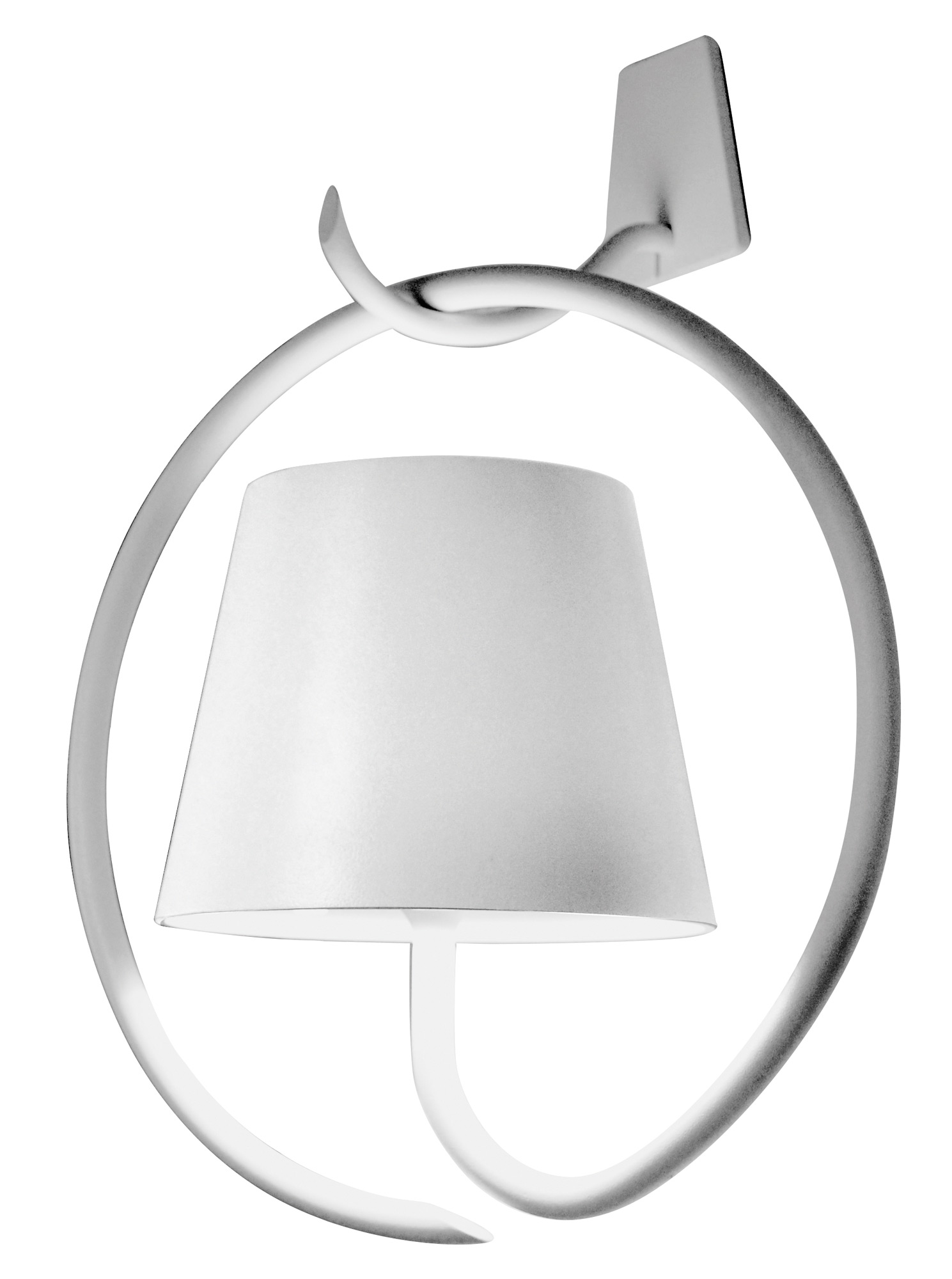 The Poldina Portable Wall Sconce With Bracket presents the latest word in wall-mounted lighting. Smooth-sided aluminum extends a stem from the small wall plate, suspending rechargeable LED lamping set under a flared shade at the center of an open ring. The illumination provided is potent, though somewhat eased by a polycarbonate diffuser, and is able to function for 10 hours per charge. Charging time approximately 6-8 hours.