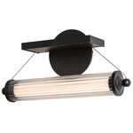 The Libra Wall Sconce brings a bit of industrial flare to your interior space. A fluted glass tube is capped at the ends and hung by adjustable low voltage cables to create a wide range of uses. A stained Black wood accent completes the look. Backplate: 8.3 inch x 5.5 inch rectangle. Handcrafted to order by skilled artisans in the USA. Lifetime Limited Warranty when installed in residential setting.