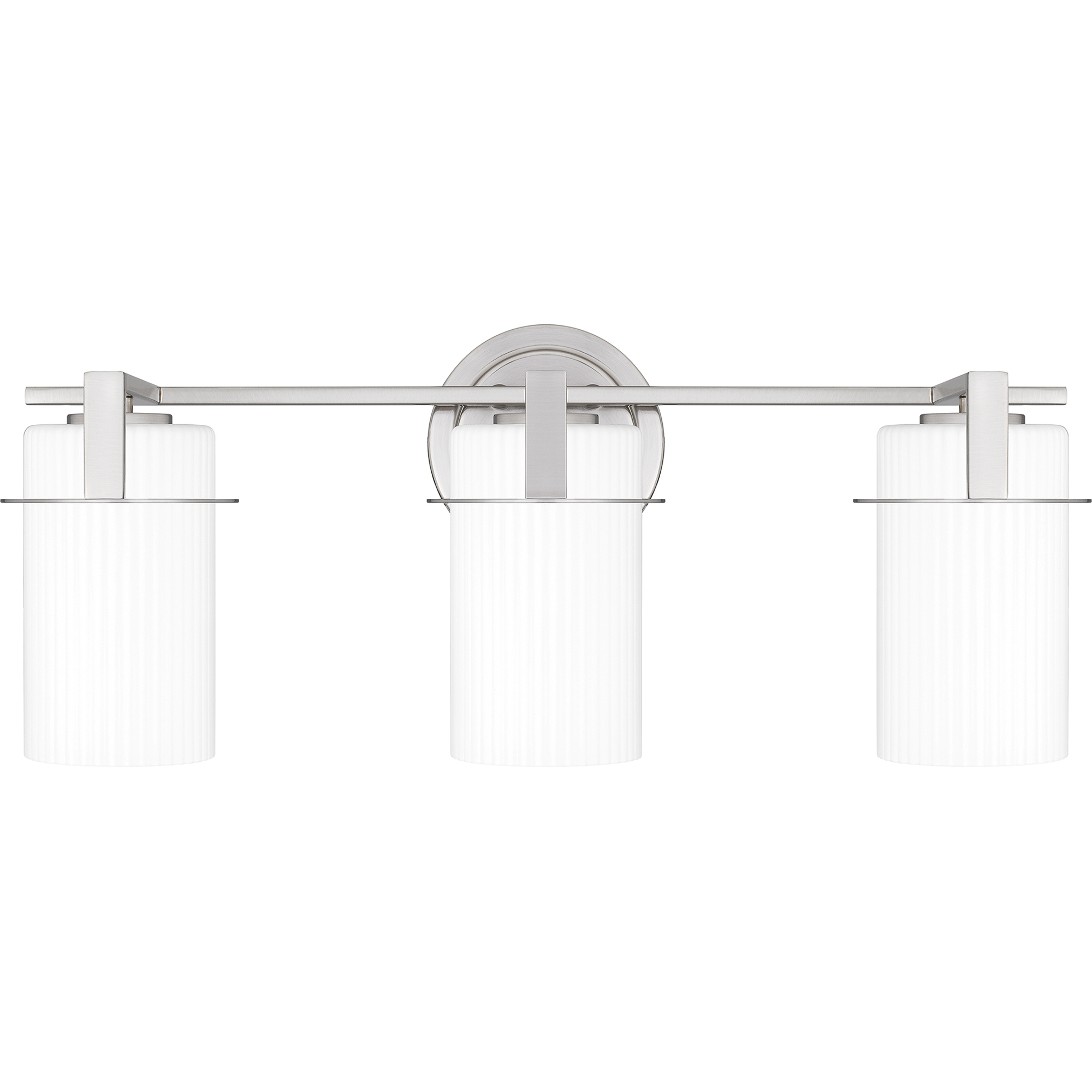The Seymour Bathroom Vanity Light offers versatile, transitional styling for every room in your home. The simple silhouette features opal etched ribbed glass shades that add style while casting a soft glow. Can be mounted up or down.