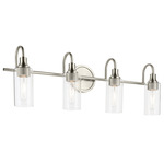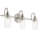 The Kavi Bathroom Vanity Light features elegant, sleek curves and fine detailing to complement any space. The clear glass shades showcase the decorative bulbs, providing a gentle glow. Perfect for a powder room or main bath.