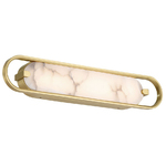 Encasing the beauty of natural alabaster stone, the Noga Bathroom Vanity Light displays these characteristics through warmth in illumination. The stones unique trails of clouding and veins are exhibited in larger one piece plates, providing a modern minimalist take on this timeless design. Can be mounted horizontally or vertically.
