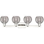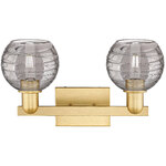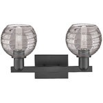The Athens Arcadia Deco Swirl Bathroom Vanity Light showcases light smoke glass shades. A sleek and modern arm adds an elevated style and supports the sturdy glass shades. Install with glass facing up or down.
