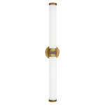 The chic and transitional Remi Bathroom Vanity Light features a slim profile with sophisticated details. The etched White glass cylinder is finely detailed with precise, stepped end caps and the cast knurled bracelet in Champagne Bronze or Chrome is artfully crafted with vintage appeal. Mount vertically or horizontally.