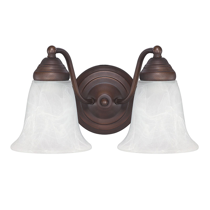 The Brady Bathroom Vanity Light embodies a classic, elegant style with its slim curving arms and bell-shaped faux alabaster glass shades. It can be installed facing up or down.