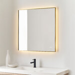 The Cadre Square Mirror features a warm backlit glow that creates a sophisticated statement. The functional yet subtle on-mirror touch controls allow you to dim the LED's intensity and adjust the color temperature as your needs change from task to mood lighting. The Cadre mirror is finished with a thin edge adding an elegant accent to its simple aesthetic. Backlit with 2700K-5000K tunable color temperature integrated LEDs. Mounting bracket is installed on the mirror and mounting hardware is included in the packaging.