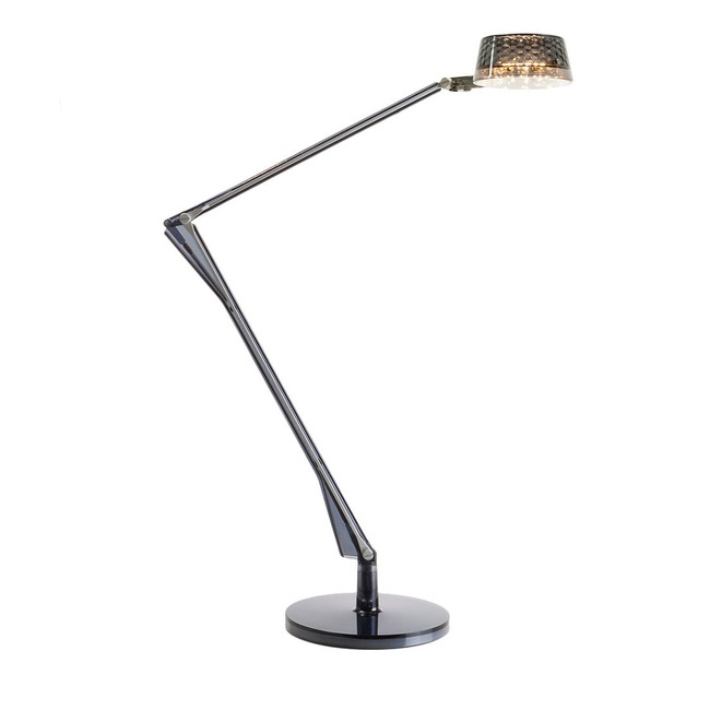 The Aledin Dec Desk Light features a faceted cone shaped head that provides a direct luminous beam of light that can be adjusted, set into an articulated body that has two arms. Perfect for task lighting or for use in any modern interior. Available finished in Amber, Blue, Crystal, Smoke, or Green. UL listed.
