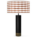 The Weave Thad Table Lamp offers a sleek and modern design that will be sure to enhance any space. A horizontal weave like design in is digitally printed onto the drum shaped White linen shade. The sleek, narrow body is accented with a bottom Walnut trim. On/Off switch is located on the lamp socket. Custom made in the USA.