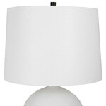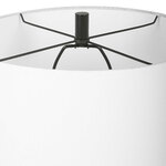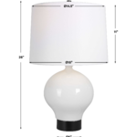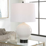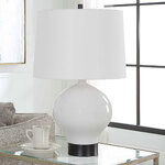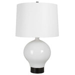 Simple yet sophisticated, the Collar Table Lamp is designed with a rounded ceramic base finished in a gloss white glaze accented with satin black details. The tapered round hardback shade is a white linen fabric. 3-Way Socket Switch.