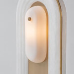 The Vima Table Lamp takes inspiration from the strong lines and geometric motifs of Art Deco design to offer a modern take on classic design. The lamp's arched silhouette is crafted from alabaster with a ridged texture for a dramatic look. Vima's light source is housed within a translucent diffuser to produce a soft, diffused glow. On/off switch located on cord.