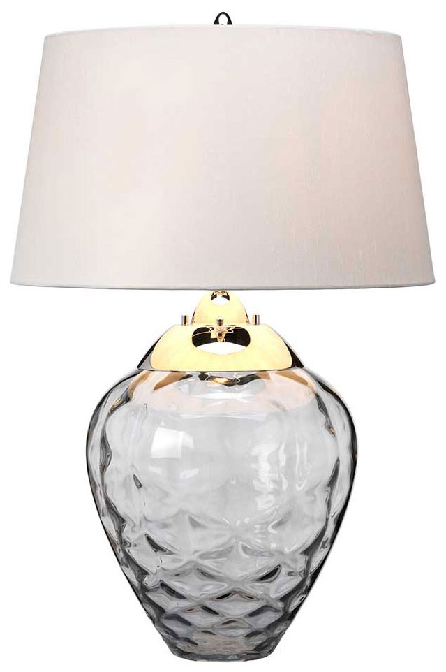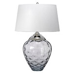 The Samara Table Lamp brings a charming beauty to your interior space. The dimpled mouth blown glass body is accented with Polished Nickel accents and topped with a tapered faux silk shade. A 3-way switch is located on the lamp socket and an On/Off switch is located on the base for the body.
