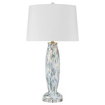 Like a mesmerizing Easter-egg, the Motte Table Lamp features a soothing color palette of opalescent white, green, and very soft peach. The swirling glass effect is achieved through an exacting combination of marbling and glass-fusing techniques. Topped with a pale shade, the body sits atop an optic crystal base. 3-Way switch on socket.