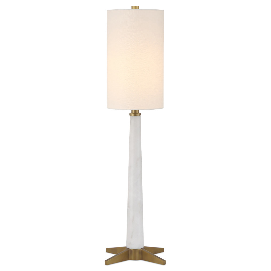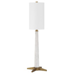 Inspired by Art Deco minimal desgin, the Munroe Table Lamp features a tall and stately grace. The slim body crafted of stunning white marble with gray veining and rises from an X-style base in an antique brass finish. On/off switch on cord.