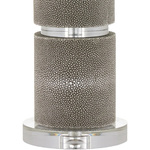 Crafted of faux gray shagreen, the Lofitt Table Lamp is the epitome of luxurious style. Bands of optic crystal add sparkle and contrast with the stingray texture of the column. A slub linen shade softens the overall texture of the lamp. 3-Way switch on socket.