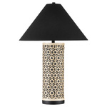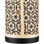 The Nebulon Table Lamp features hand woven motifs in a traditional Vietnamese star-weaving pattern. This generations old artform involves weaving black-dyed and natural bamboo into the repeating hexagons. The metal base and hardware complement the empire shade, amplifying the dark tones in the lamp's body. On/off turn knob on socket.
