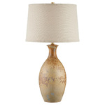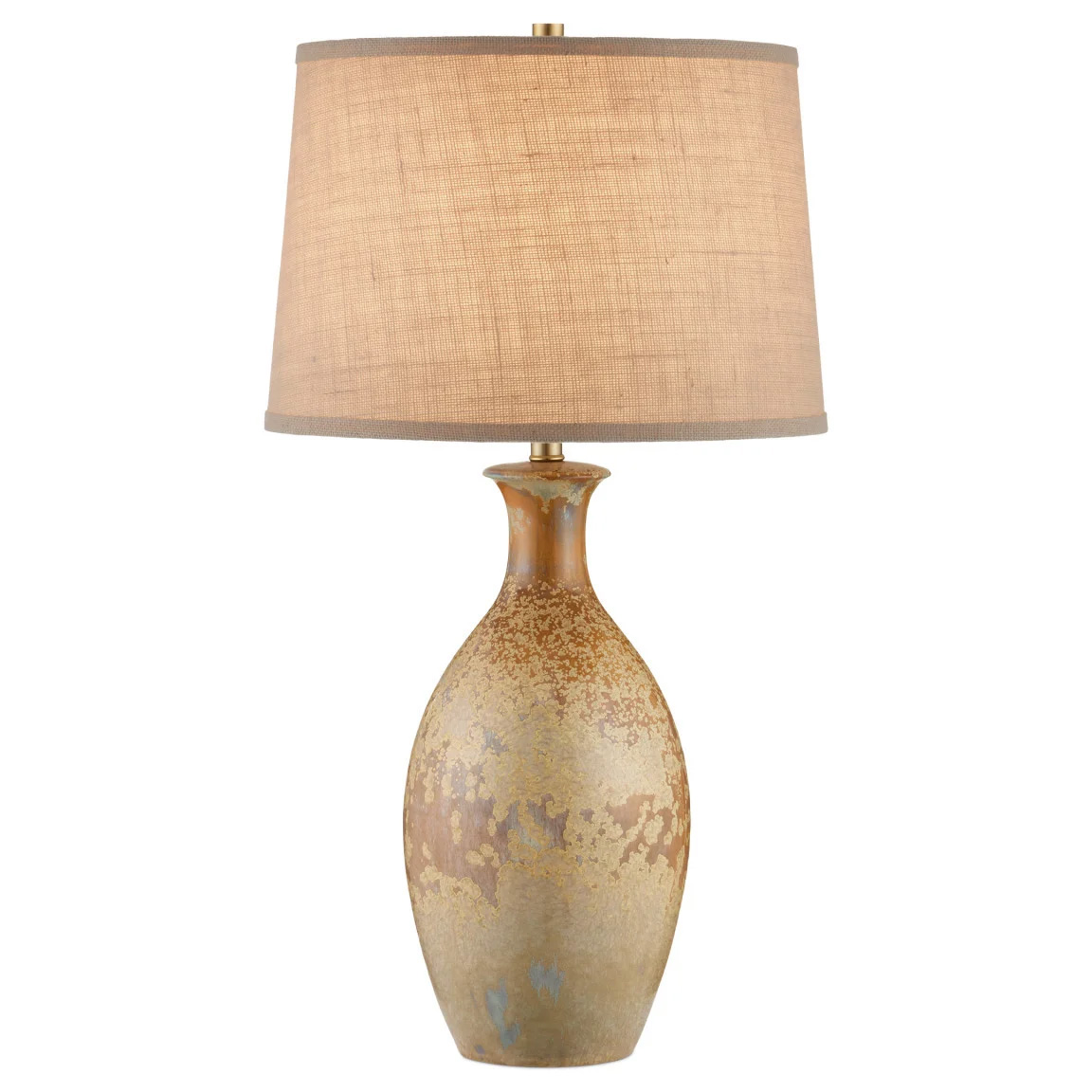 The Stellata Table Lamp features a unique crystallized surface crafted from layers of different colored glazes. When fused together during the firing process, minerals in the glazes react to form tiny crystals on the surface. These add texture to the ceramic, enhancing its visual interest. A burlap shade adds the finishing earthy touch.