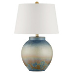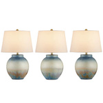 Like the sky in early morning over the sea, the Dawning Table Lamp features a serene gradation of blues punctuated by a warm, sunrise yellow. The textured surface is created when of layers of glaze crystallize during the firing process. No two will be alike because the crystal pattern that flows up from the bottom will be quite varied. A linen-cotton shade completes the look. 3-Way switch on socket.