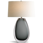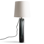 The sleek James Table Lamp features a soft aesthetic thanks to its graceful silhouette and smokey grey glass. Finished with a classic linen lampshade, this contemporary lamp will provide style for any home. 3-Way switch on the socket.