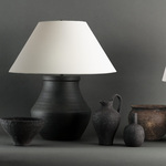 Introduce a touch of refined stoneware to your interior with the rustic Drew Table Lamp. A sleek jar-shaped ceramic base is perfectly contrasted with a clean linen drum shade. 3-Way switch on the socket.