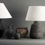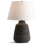 Inspired by antique pottery, the Bruce Table Lamp features a dramatic ceramic base with an aged aesthetic. The ribbed finish on the lamp base creates organic textural appeal, perfectly contrasted with the linen drum shade. 3-Way socket on the base.