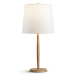 Natural elements makes the Portland Table Lamp an easygoing addition to any home. A gently curved wood stem is accented with brassy metal caps for a hint of mid-century charm. The off-white linen drum shade completes the look. 3-Way switch on the socket.