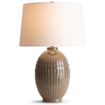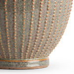 The Pearl Table Lamp features an eye-catching raise pattern along the ceramic. Dotted lines wrap the oval body are finished in a variegated glaze, creating a stippling of warm and cool hues that come to life under the light. 3-Way switch on socket.