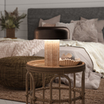The Fluted Column Portable Table Lamp is a luxury statement for your living space. Inspired by Greek architectural columns, it features a meticulously carved genuine natural stone base supporting a perfectly proportioned dome. Crafted from sumptuous materials and weighing 10 pounds, this substantial lamp combines timeless gravitas with modern cordless convenience. 8 inch USB-C charging cable with power block included. Charge time is 6-8 hours and can run up to 18 hours on the lowest setting. Touch-activated switch located at the top of the dome.