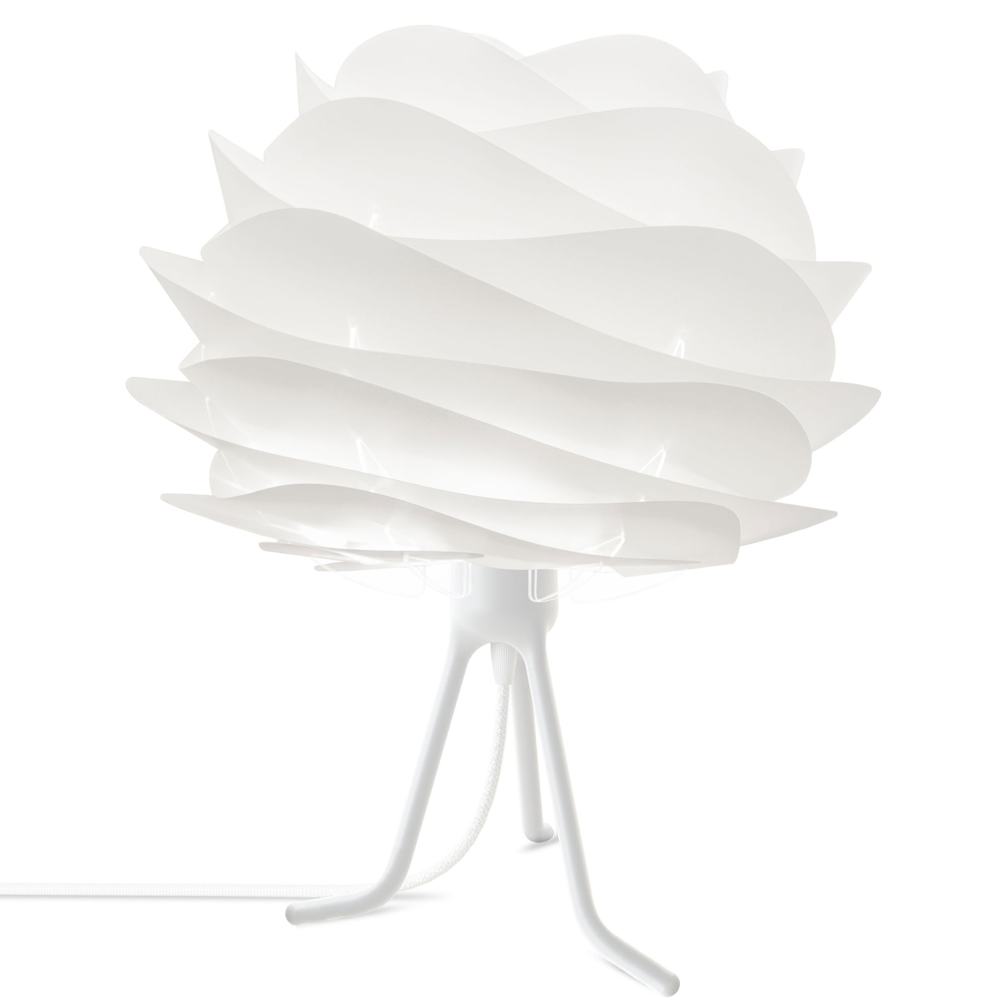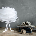 The Carmina Mini Tripod Table Lamp reminds one of the wave-like dunes of the many beautiful shorelines surrounding Denmark. The translucent shade gracefully diffuses light to provide soft, pleasant illumination from its flower-like form. A tripod base contrasts the shade's calm visual lines with sleek, angled legs. The reversible legs can be installed in a high or low position for variable height. On/off switch located on cord. Ships flat with easy to assemble instructions.
