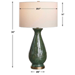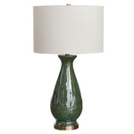 Bright and vibrant, the Colestin Table Lamp is the perfect pop of color for a living room or den. The ceramic body is finished in a glossy green drip glaze and paired with brushed brass base for a classic touch. The white linen hardback shade provides soft, even illumination. Due to the nature of fired glazes on ceramic lamps, finishes will vary slightly. 3-Way switch on the socket.